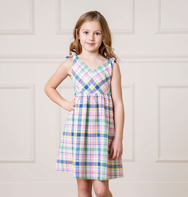 Bow Shoulder Swing Dress | Flower Show Plaid