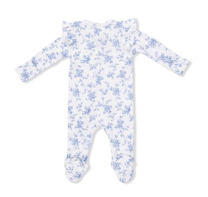 Two Way Zipper Ruffle Sleeve Footie | Baby Blue Vines Floral