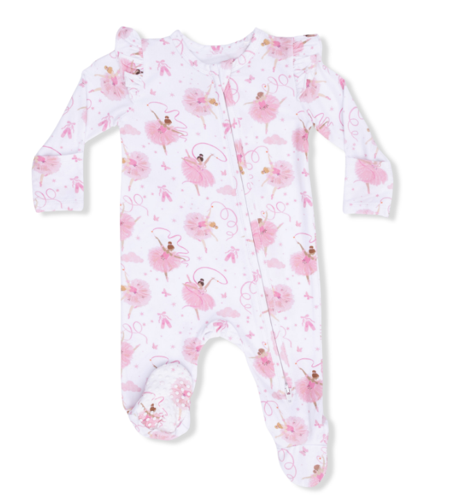 Two Way Zipper Ruffle Sleeve Footie | Ribbon Ballerinas