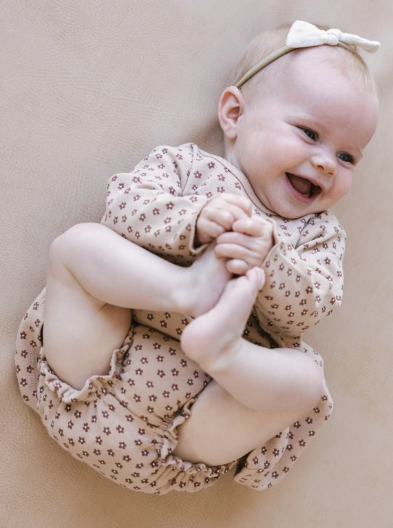 Gathered bloomers in our velvety soft organic brushed jersey. Elasticized waist and leg openings.