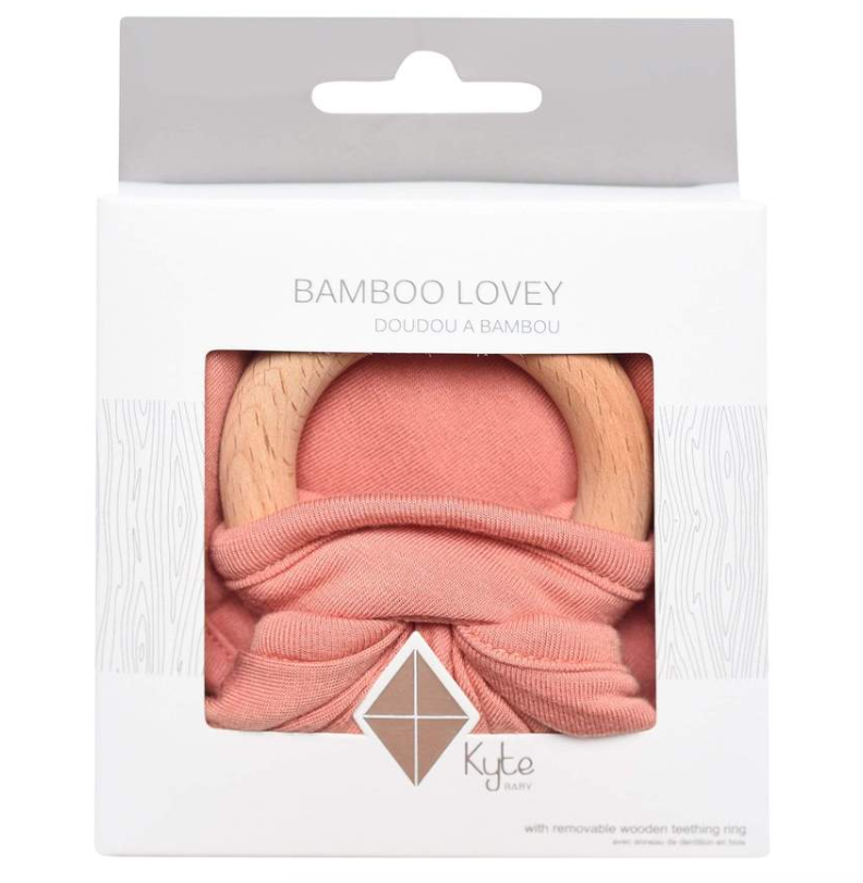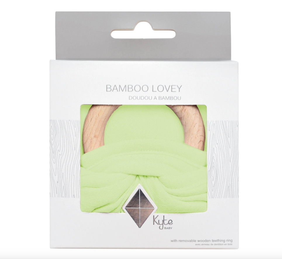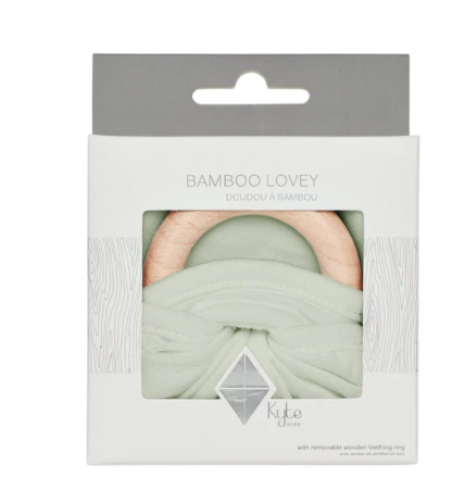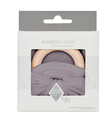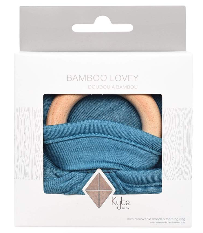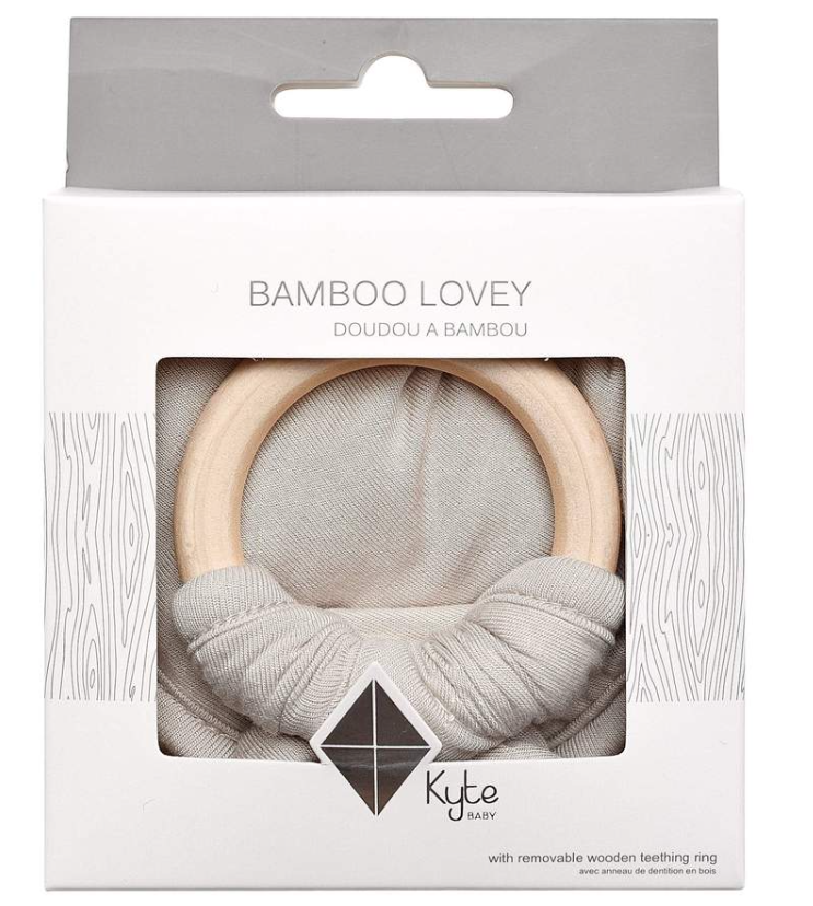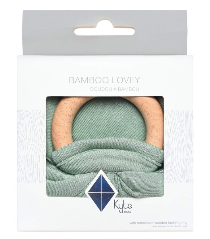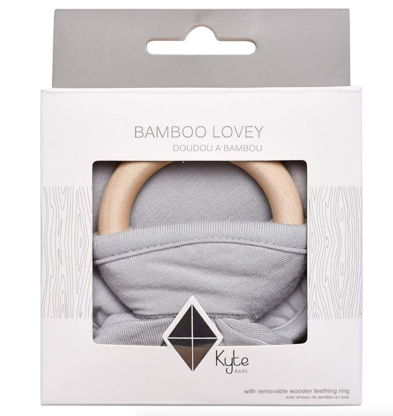 Our loveys came to be when a mama asked if we sold our sleep bag material as a swatch for baby to cuddle with. We didn't back then, but now we do. Our lovey is a mobile and attachable mini security blanket made from environmentally-friendly bamboo -- the same ultra soft material as in our sleep bag. They are breathable and antibacterial, which is great news since they'll be spending a lot of time in baby's hands and mouth. They also relieve symptoms of teething with the detachable wooden teething ring. You can easily unthread the ring and attach baby's favorite pacifier, teether, toy and even our ring sling!