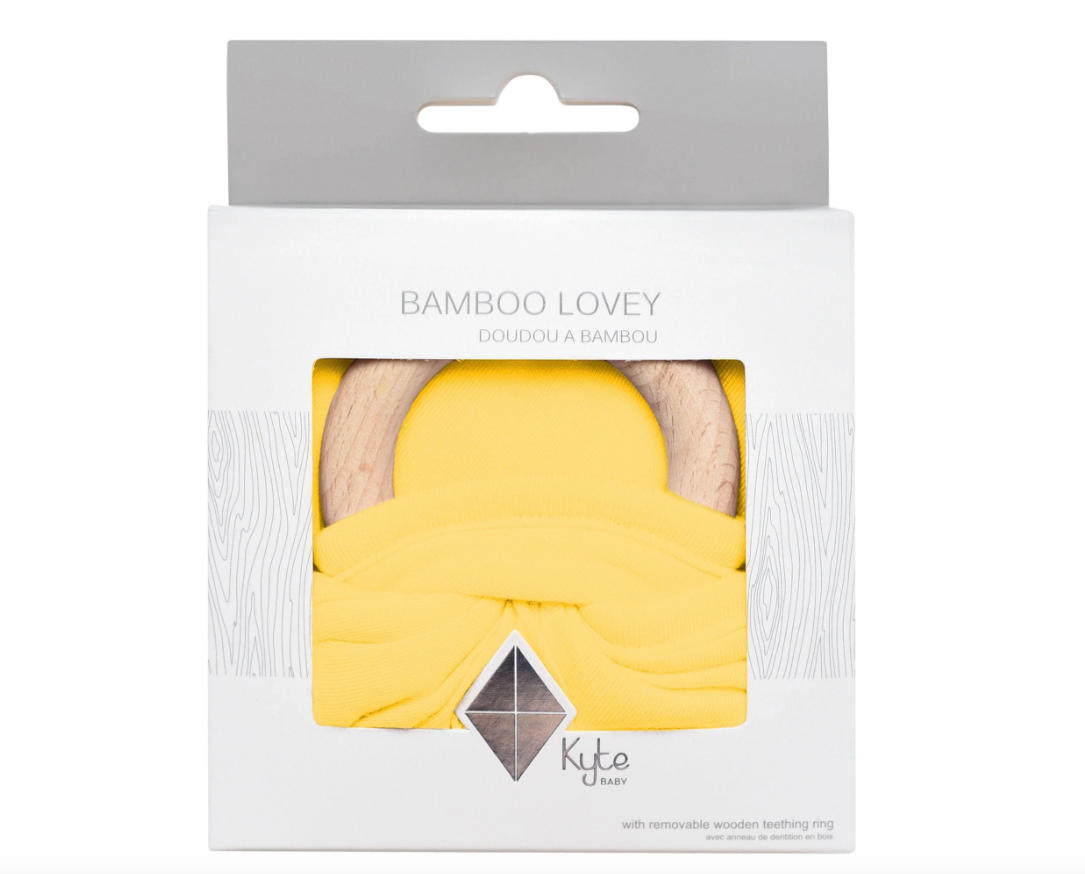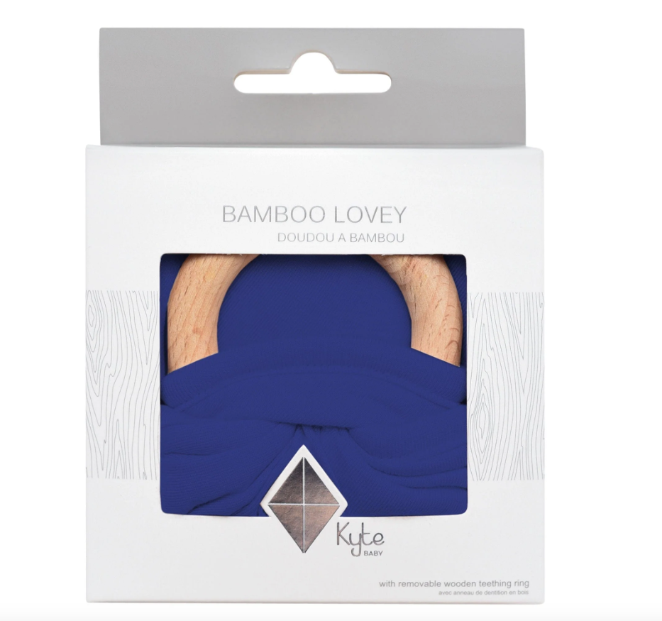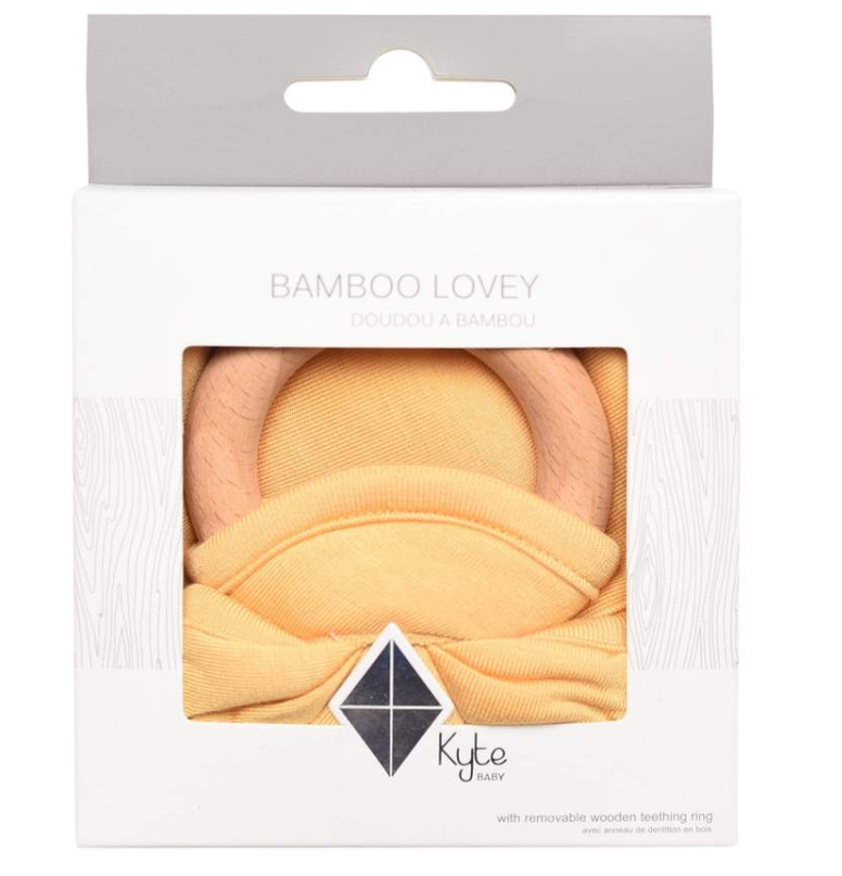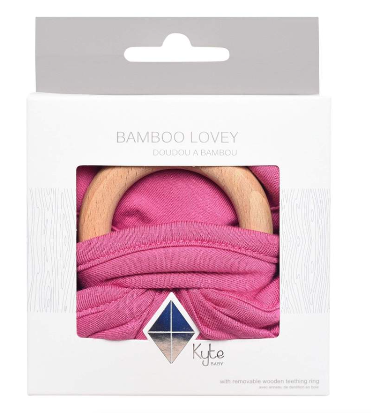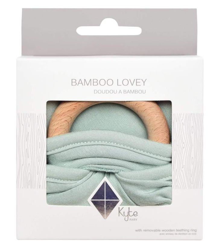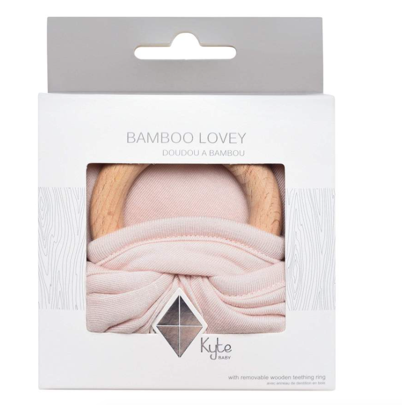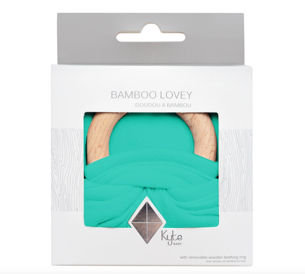 Our loveys came to be when a mama asked if we sold our sleep bag material as a swatch for baby to cuddle with. We didn't back then, but now we do. Our lovey is a mobile and attachable mini security blanket made from environmentally-friendly bamboo -- the same ultra soft material as in our sleep bag. They are breathable and antibacterial, which is great news since they'll be spending a lot of time in baby's hands and mouth. They also relieve symptoms of teething with the detachable wooden teething ring. You can easily unthread the ring and attach baby's favorite pacifier, teether, toy and even our ring sling!