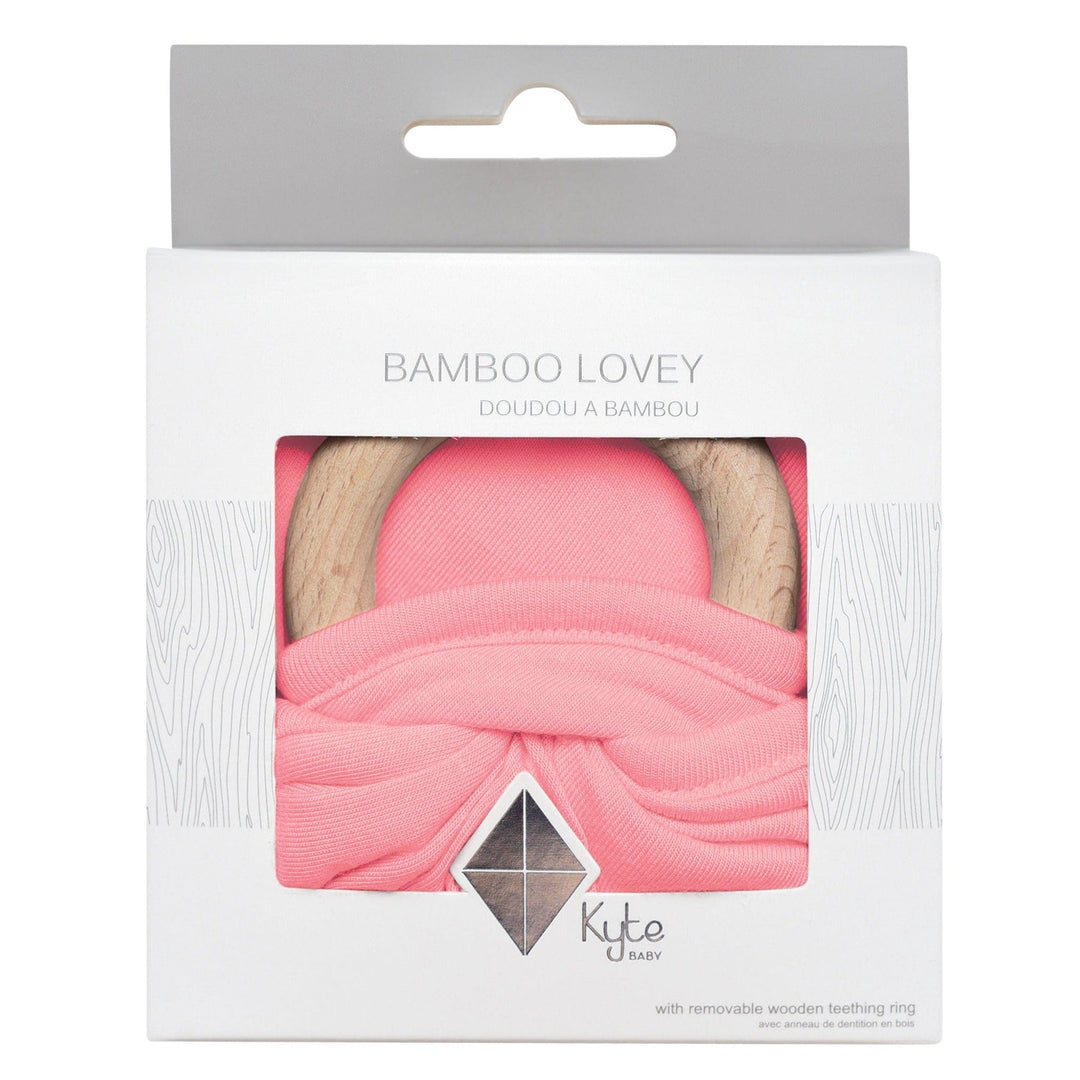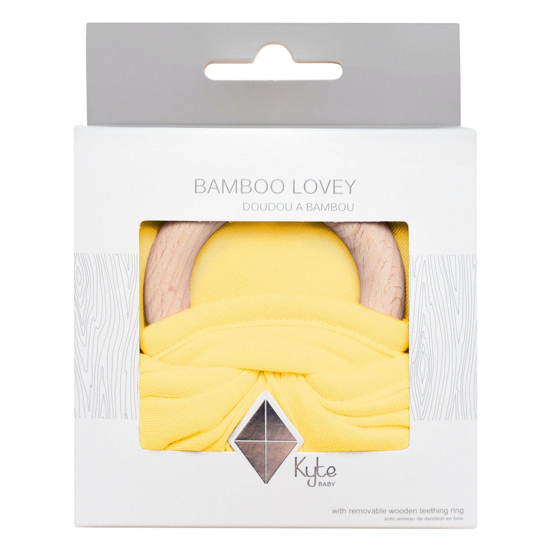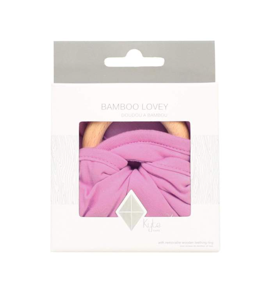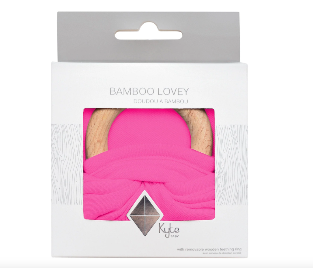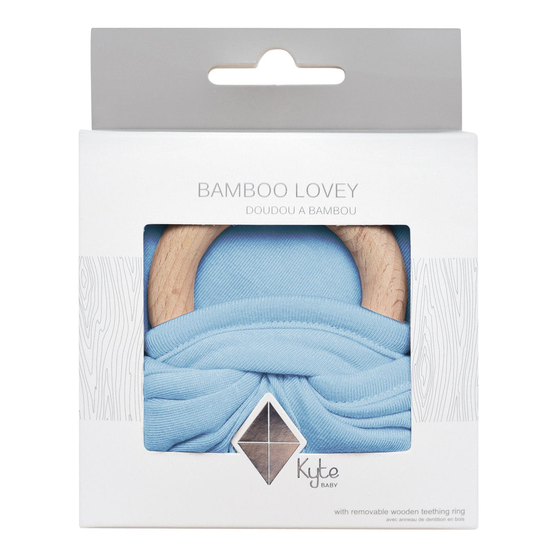 Our loveys came to be when a mama asked if we sold our sleep bag material as a swatch for baby to cuddle with. We didn't back then, but now we do. Our lovey is a mobile and attachable mini security blanket made from environmentally-friendly bamboo -- the same ultra soft material as in our sleep bag. They are breathable and antibacterial, which is great news since they'll be spending a lot of time in baby's hands and mouth. They also relieve symptoms of teething with the detachable wooden teething ring. You can easily unthread the ring and attach baby's favorite pacifier, teether, toy and even our ring sling!