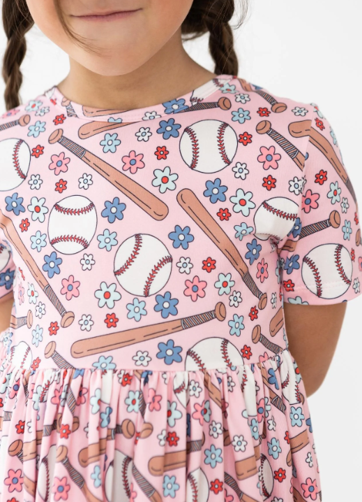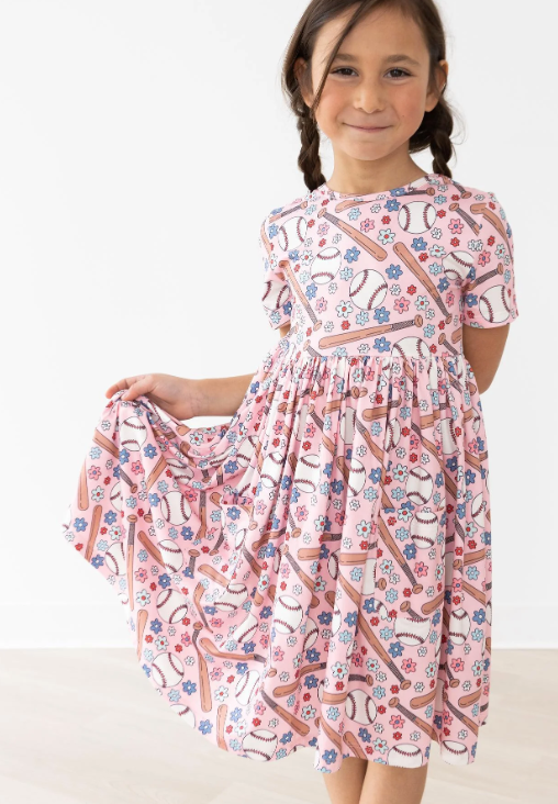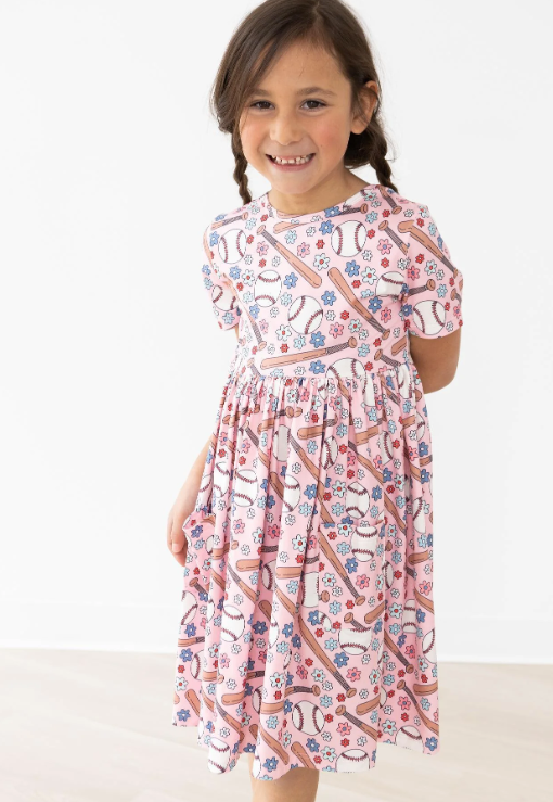 Batter Up Short Sleeve Pocket Twirl Dress – Babycakes Children's Boutique