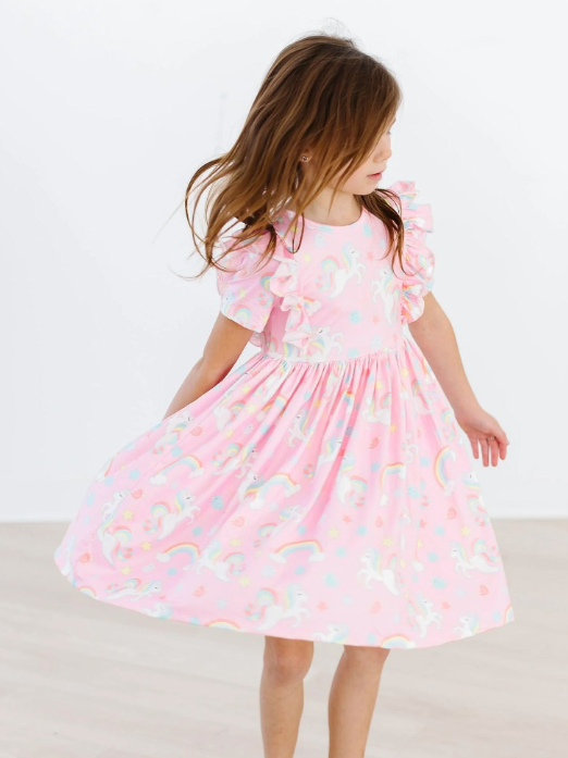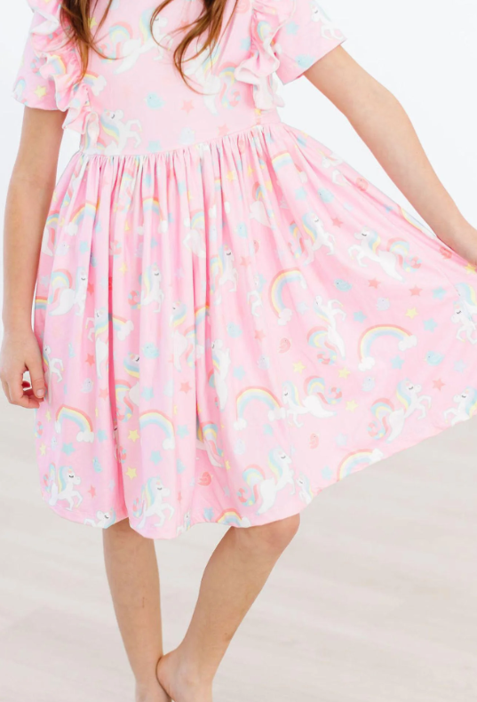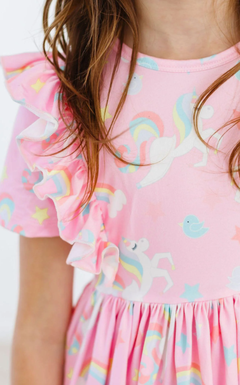 My Little Unicorn Short Sleeve Ruffle Twirl Dress – Babycakes Children's Boutique