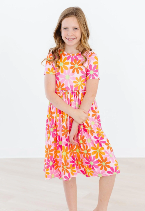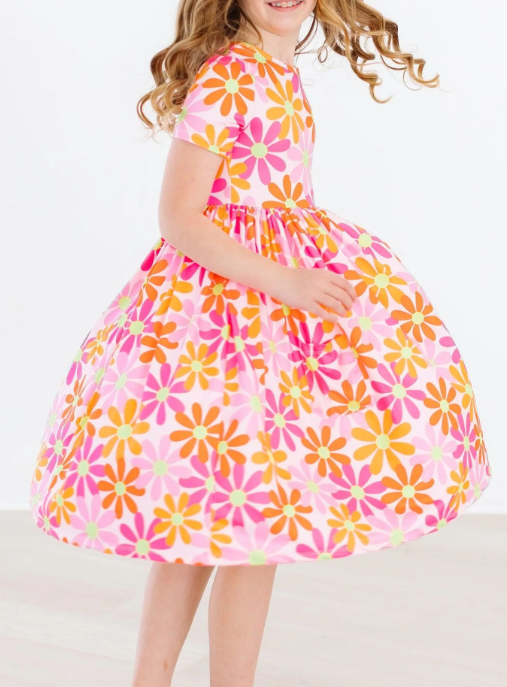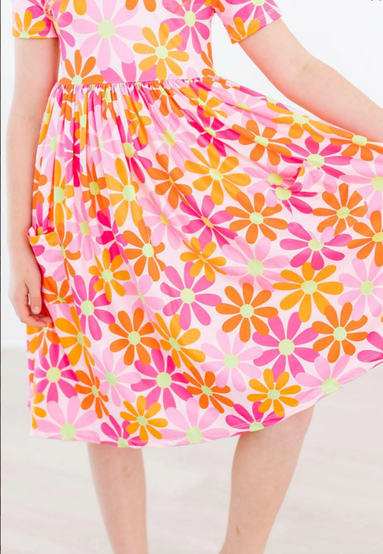 Retro Daisies Short Sleeve Pocket Twirl Dress – Babycakes Children's Boutique