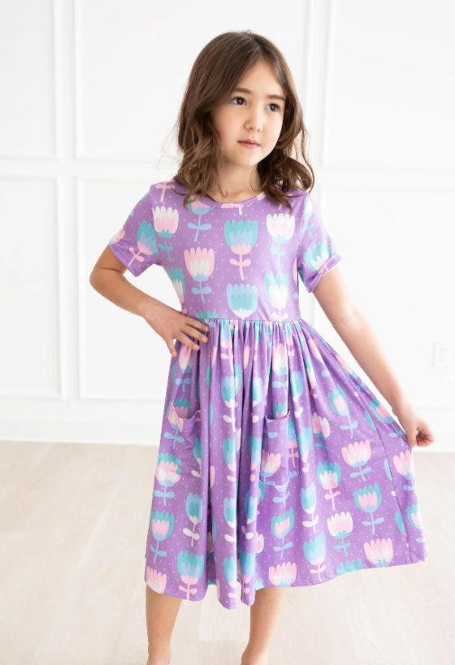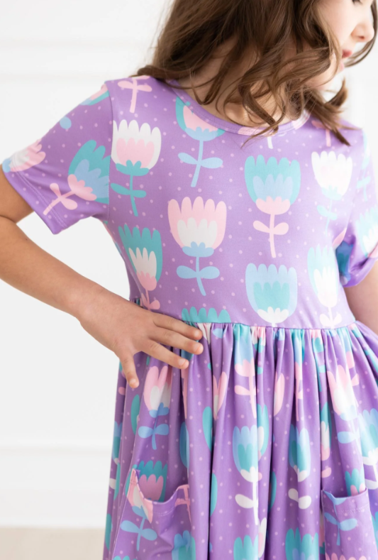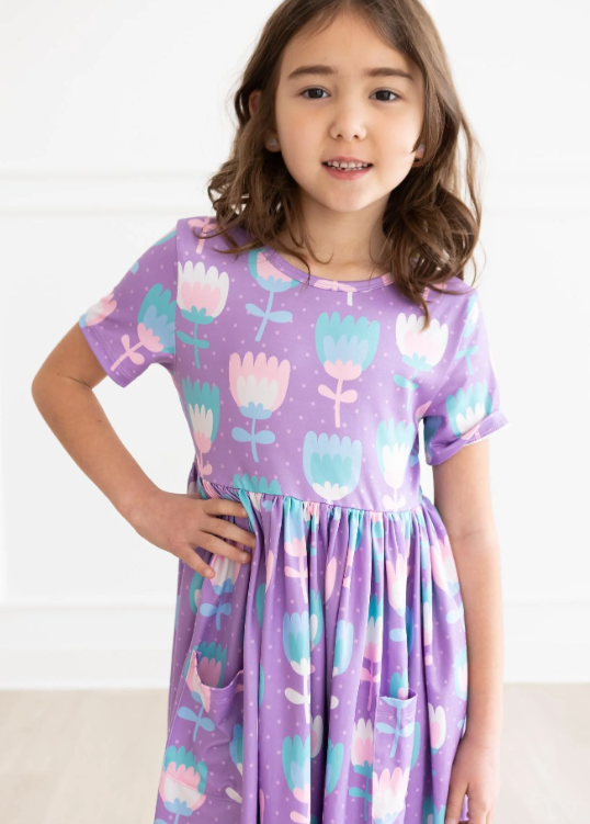 Too Cool Tulips Short Sleeve Pocket Twirl Dress – Babycakes Children's Boutique
