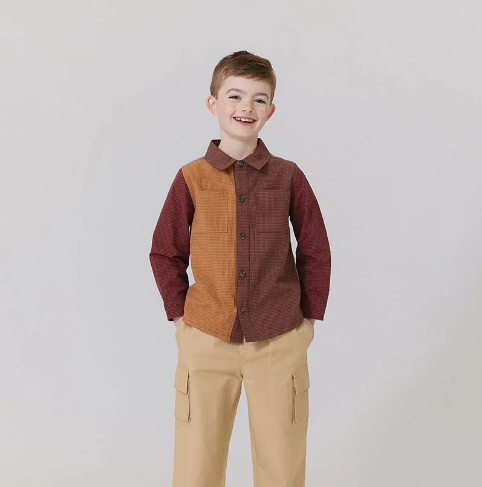 All Mixed Up! Color blocked ginghams in pumpkin, rust and cranberry fall together in our collection classic Boys Jack Shirt shown here in Mixed Checks. Long sleeves, pattern on pattern chest pockets and faux horn buttons up the front define this wear anywhere wardrobe staple. Pair with our Boys Jackson Pant for a buttoned up fit, that moves seamlessly from a backyard game of tag to Sunday lunch with the grandparents. Match back to sibs in our Baby Boys Jack Shirt, Girls Allie Skirt and Girls Kit Dress.