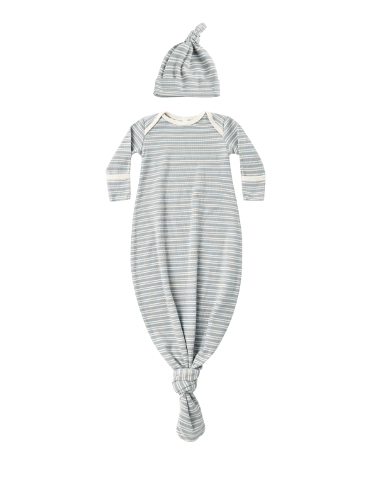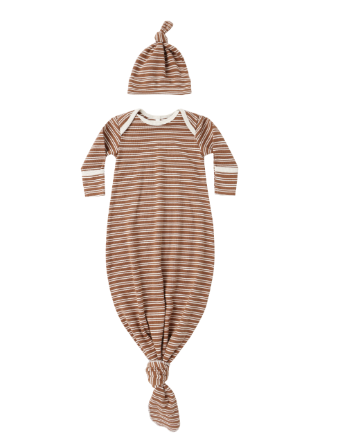 Knotted Baby Gown & Hat Set | Cedar Micro Stripe
