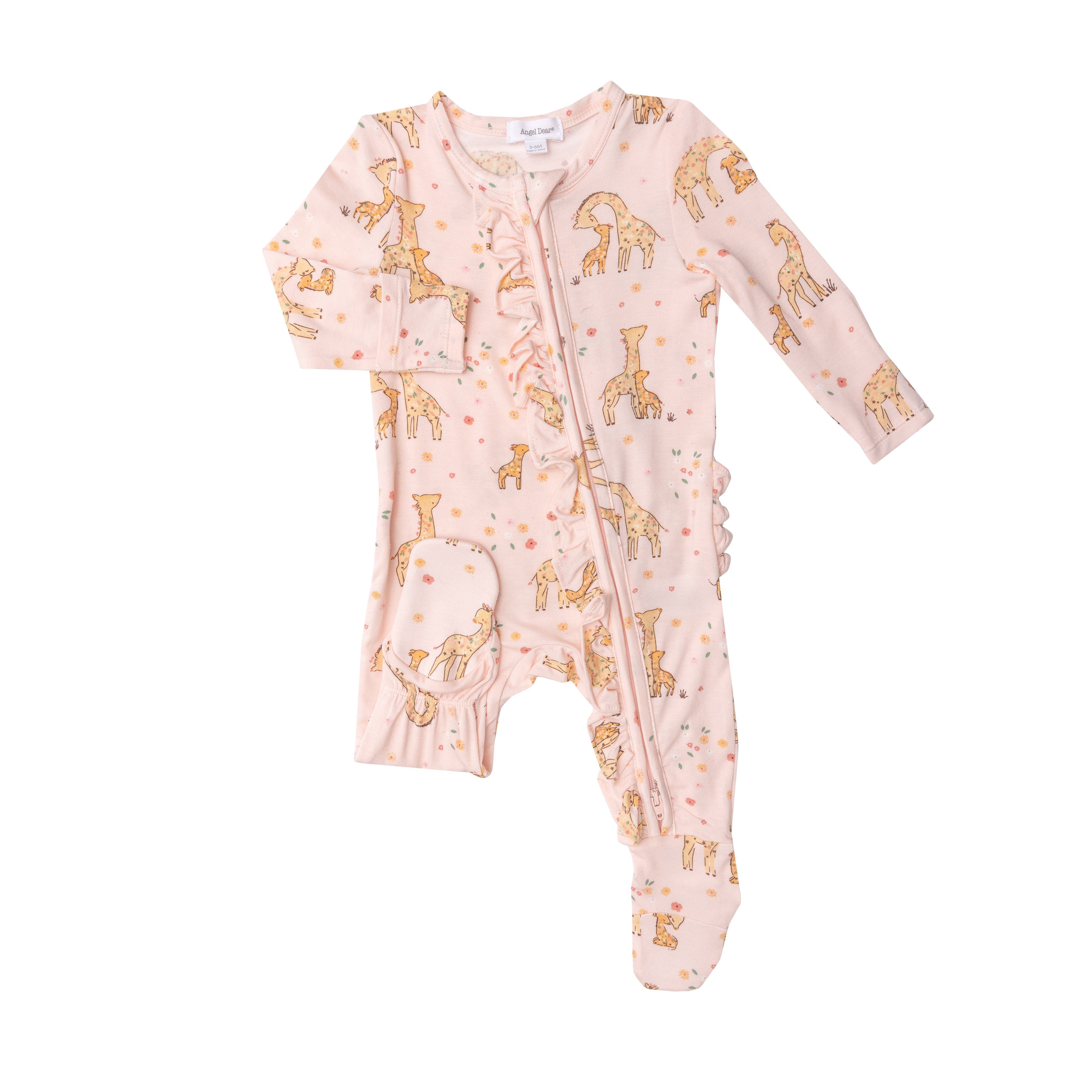 Our signature ruffle front zipper footie makes changing your baby a Snap! (or as we like to say a Zip!) Super soft bamboo fiber fabric and Angel Dear's signature prints will keep the oohs and aahs a- coming.