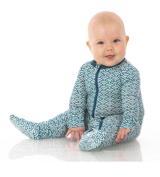 Print Footie with Zipper | Fresh Air Waves – Babycakes Children's Boutique