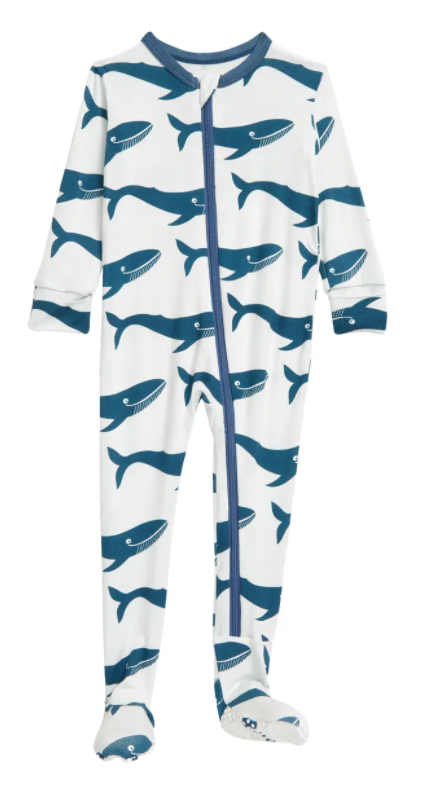 Print Footie with Zipper | Fresh Air Blue Whales – Babycakes Children's Boutique