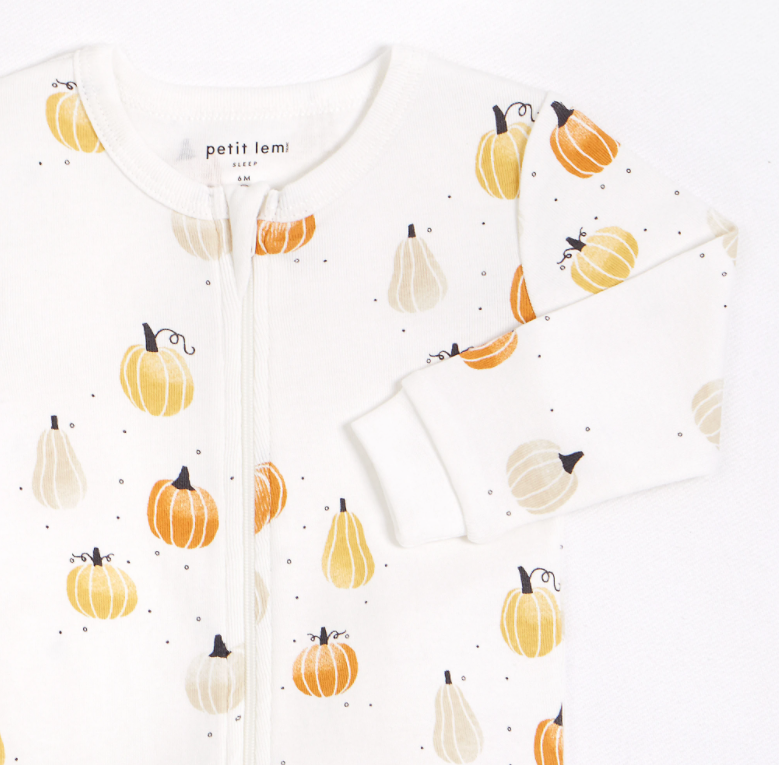 Your little one will be the cutest pumpkin in the patch dressed in this ultra-soft sleeper made from 100% organically grown cotton. The head-to-toe frontal zipper can be opened on either end for easy diaper changes, making your night time routine easy as (apple) pie.