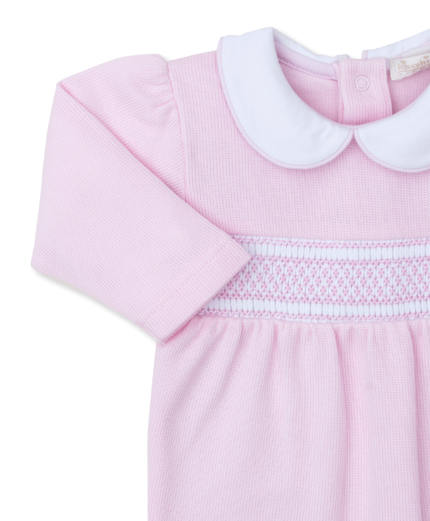 Pink CLB Punto Ingles Footie w/ Hand Smocking
