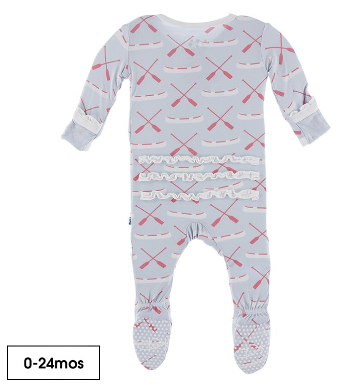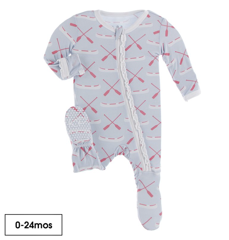 Print Muffin Ruffle Footie with Zipper | Dew Paddles and Canoe – Babycakes Children's Boutique
