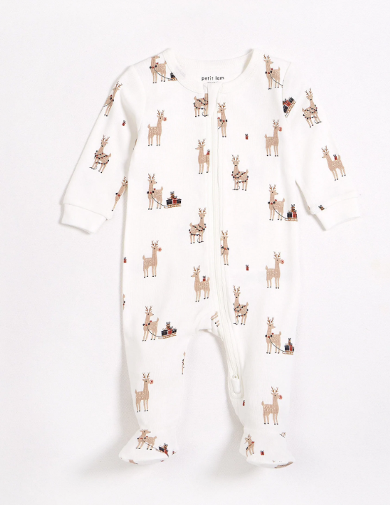 This playful sleeper with Rudy & The Reindeers print is the perfect piece for Christmas eve fun. With matching PJs available for older siblings, the kids will love watching festive films with the family in their cozy, organic cotton rib pieces. The sleeper has elasticated cuffs and integrated feet, making it ideal for Wintry walks in the stroller or keeping cozy overnight. With a full-length zipper, the sleepsuit makes diaper changing a little easier – the whole piece doesn’t need to be removed as the sleeper can be zipped from the bottom up.