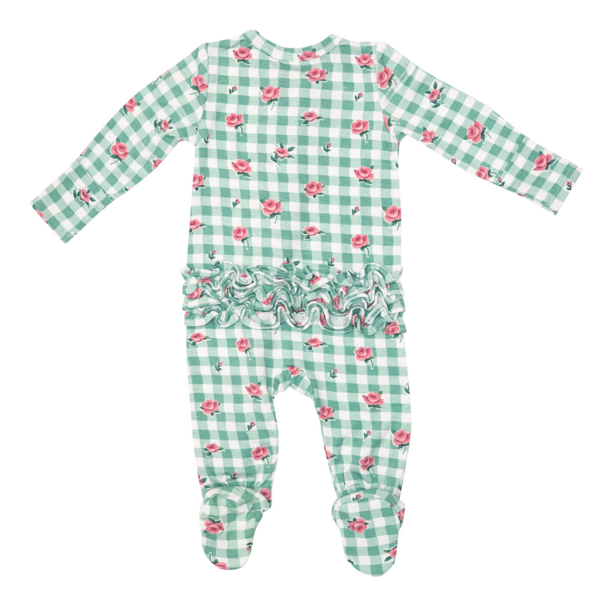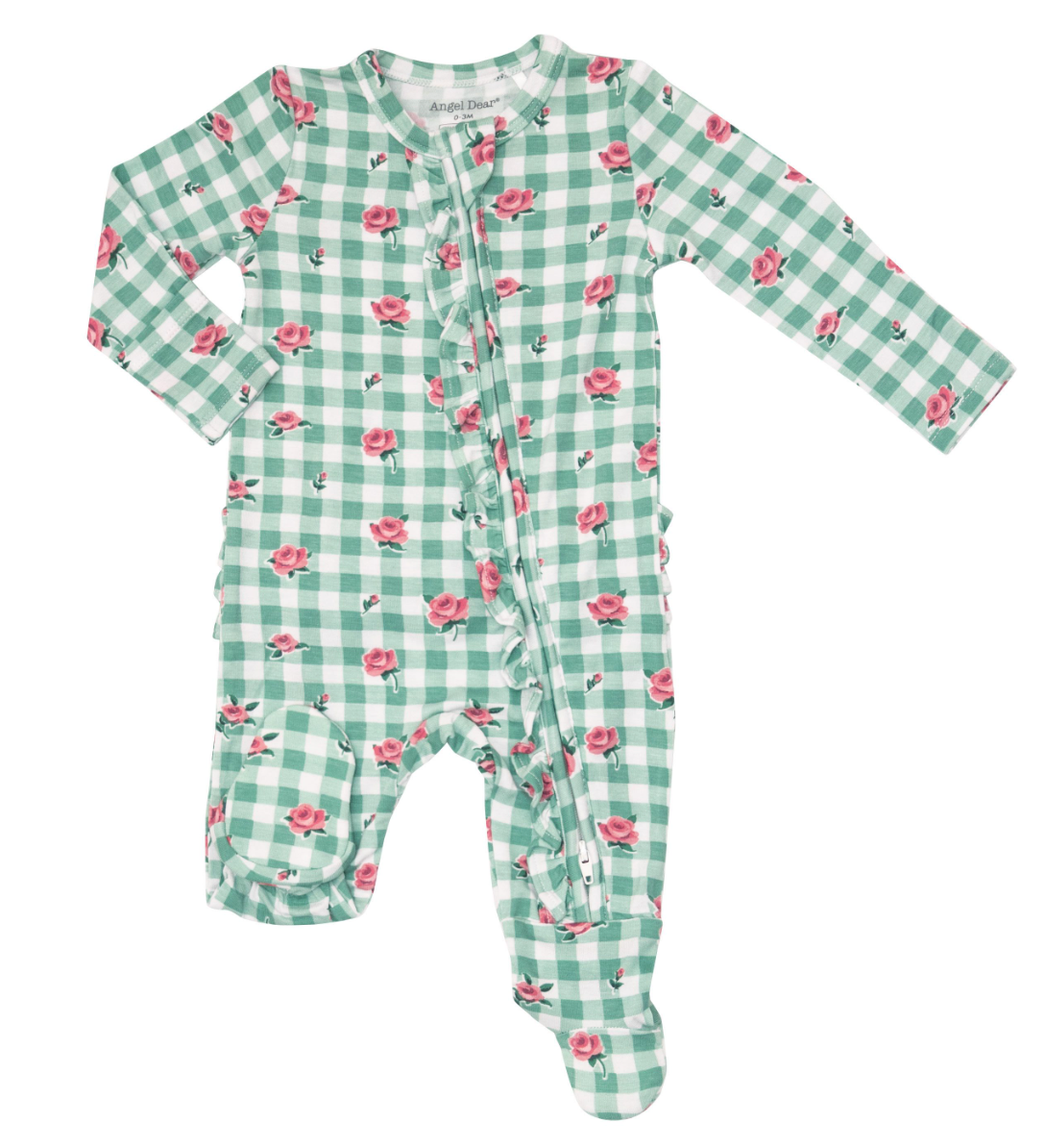 Angel Dear's signature ruffle zipper footie makes changing your baby a Snap! (or as we like to say a Zip!) Super soft bamboo fiber fabric and Angel Dear's signature prints will keep the oohs and aahs a- coming.