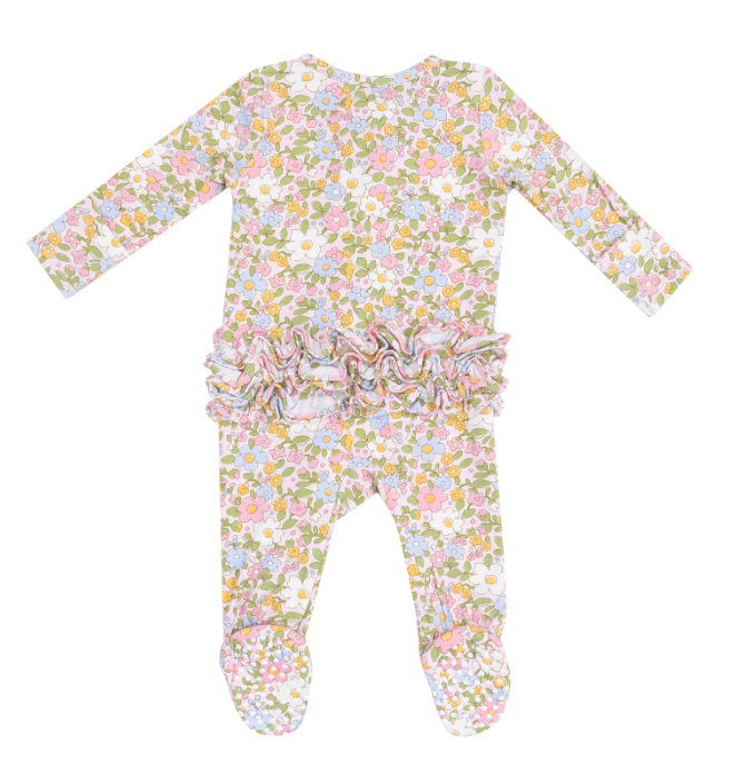 Two Way Ruffle Zipper Footie | Bubbly Baby Calico – Babycakes Children's Boutique