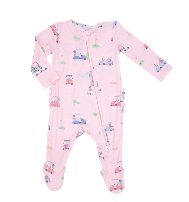 Two Way Ruffle Zipper Footie | Pink Golf Carts – Babycakes Children's Boutique