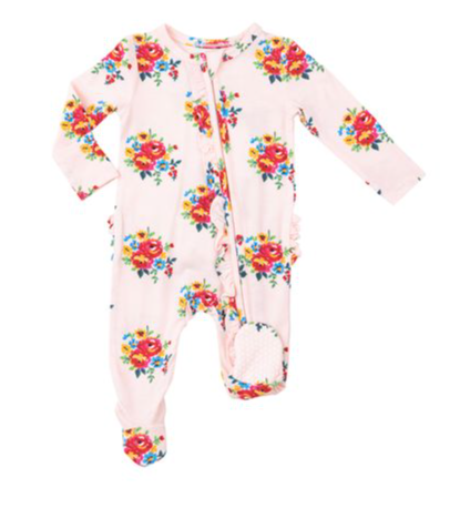 Two Way Ruffle Zipper Footie | Pretty Bouquets – Babycakes Children's Boutique