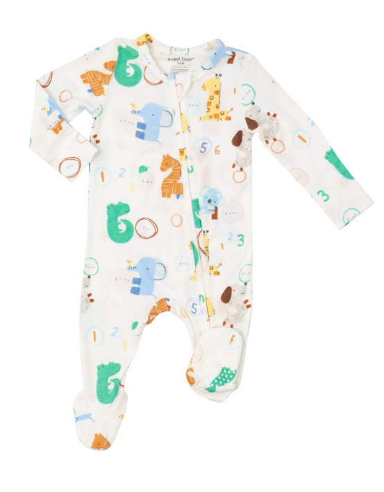 Two Way Zipper Footie | Animal Numbers – Babycakes Children's Boutique