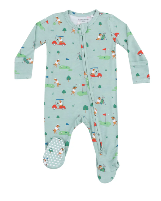 Two Way Zipper Footie | Golf Club Pups – Babycakes Children's Boutique
