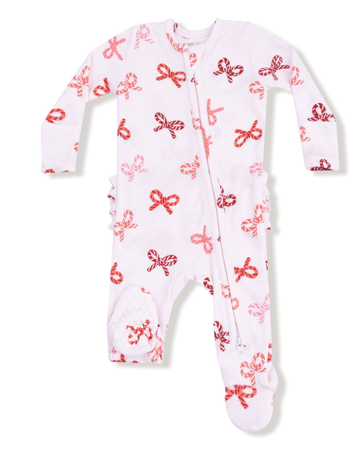 Two Way Zipper Ruffle Footie | Candy Cane Bows – Babycakes Children's Boutique