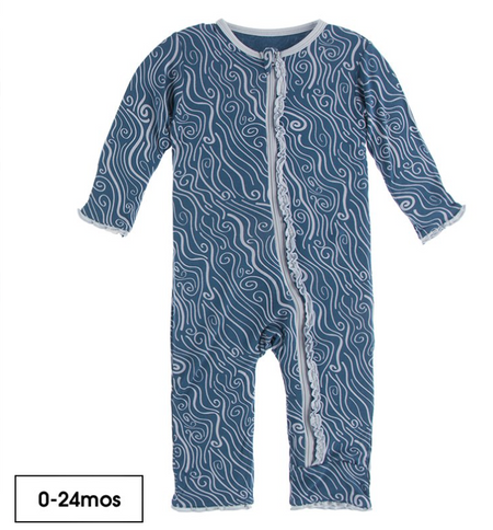 Print Muffin Ruffle Coverall with Zipper | Twilight Whirling River