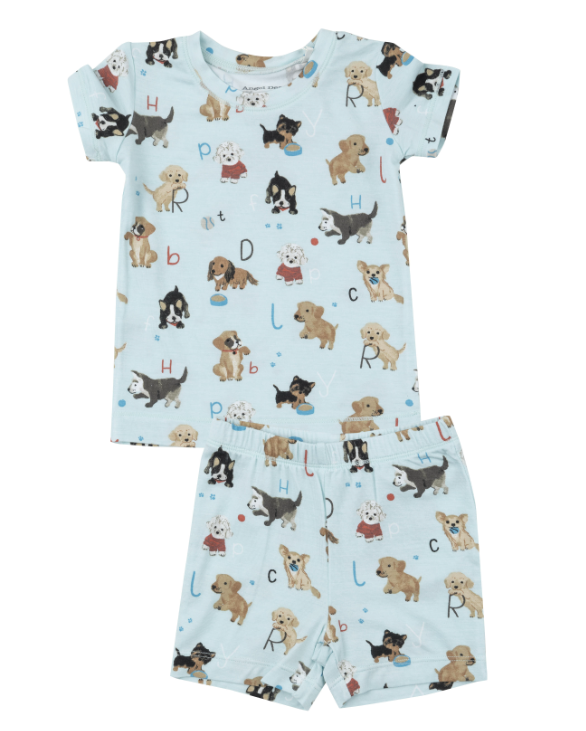 Loungewear Short Set | Blue Puppy Alphabet – Babycakes Children's Boutique