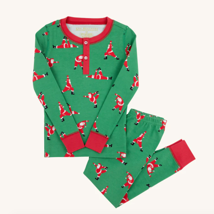 The best way to spread Christmas cheer is wearing T.B.B.C. Night Nights this year! Our Sutton's Sweet Dream Set in Toy Drop Training with Richmond Red feature Mr. Claus training for his big day. Made from Pima Cotton, this cozy two-piece set is perfect for keeping little ones comfortable all night long.