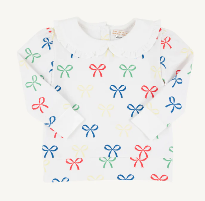 Our Maude's Ruffle Cassidy Comfy Crewneck is so cute we can hardly stand it! Featuring Ribbon Reminder with Worth Avenue White, she'll be sure to keep warm in the most adorable way possible!