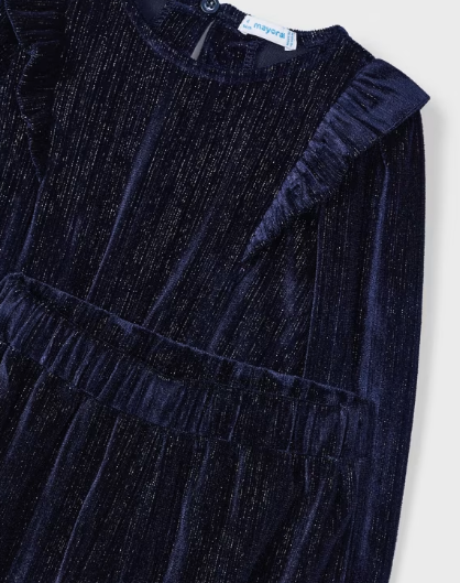 Navy Knit Dress with Ruffle | 4935