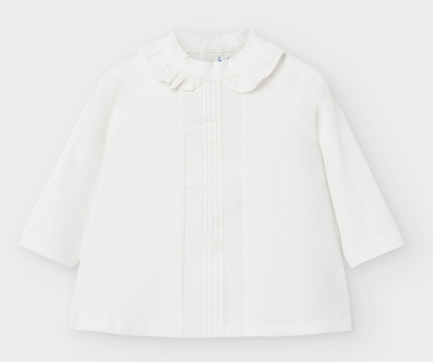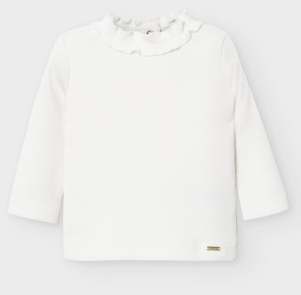 Off White Baby Girl High Neck Shirt with Ruffle (2053)