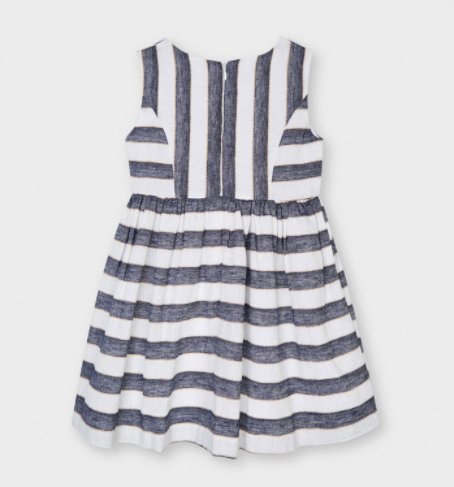 Navy Blue Striped Linen Dress | 3919