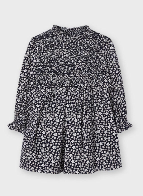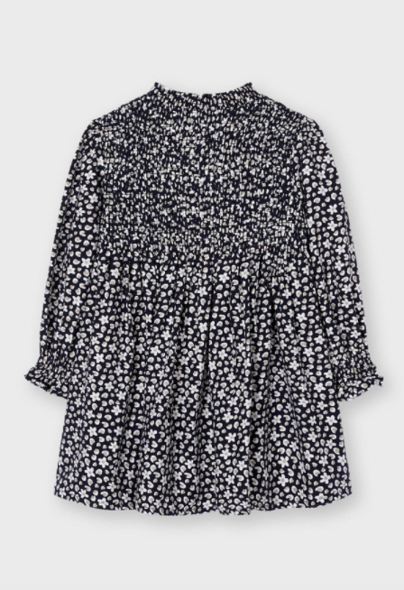 Navy Print Dress with Smocking | 4922