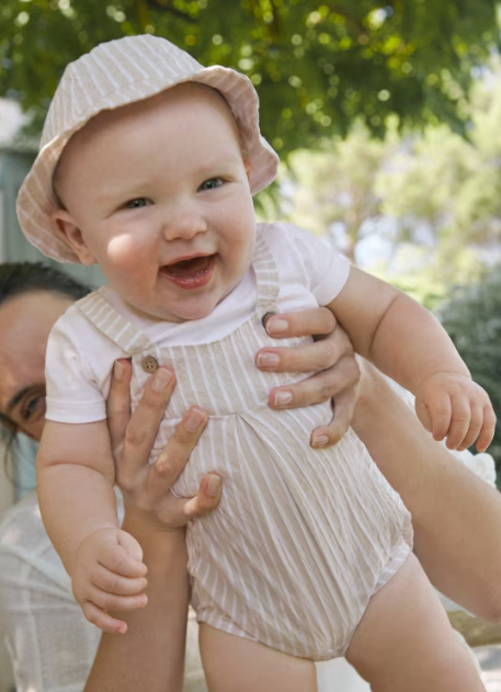 Baby Boy Tan Stripe Romper Set W/Hat | 1602