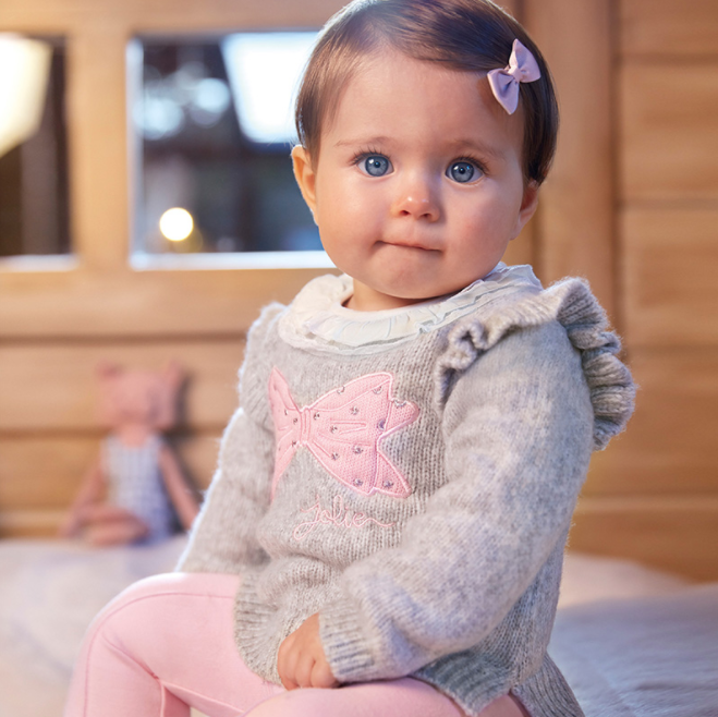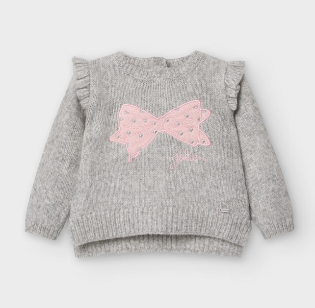 Baby Girl Grey & Pink Bow Sweater (2357)