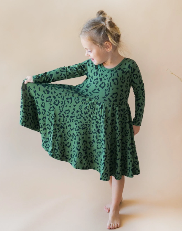 Kyte Printed Long Sleeve Twirl Dress | Hunter Leopard