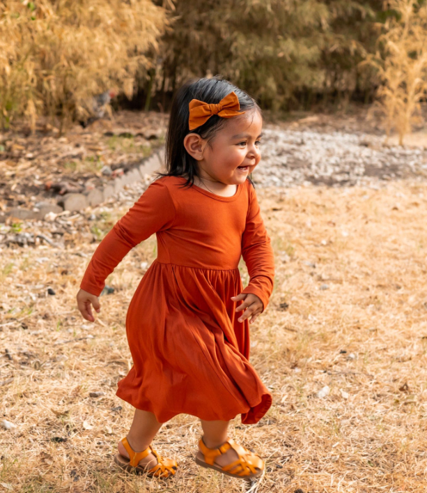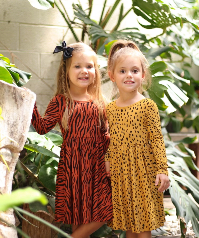Kyte Printed Long Sleeve Twirl Dress | Rust Tiger
