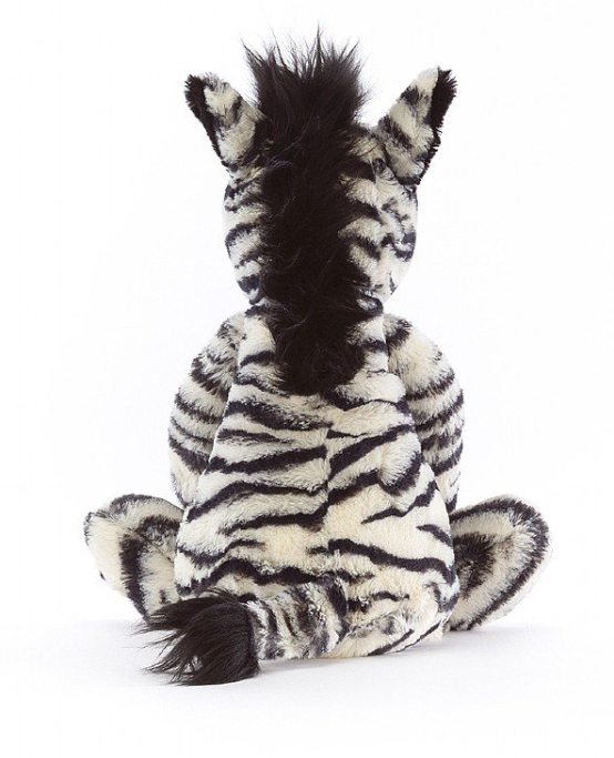 Looking very smart in black and cream stripes, it's beautiful Bashful Zebra. This zippy zebra loves to dash about flaunting a silky soft mane, a fancy tail with a tuft of black fur and a muzzle of nuzzly soft beige fur. Shy by nature and far from home, make this safari sweetie feel welcome with a squeeze of those squidgable hooves!