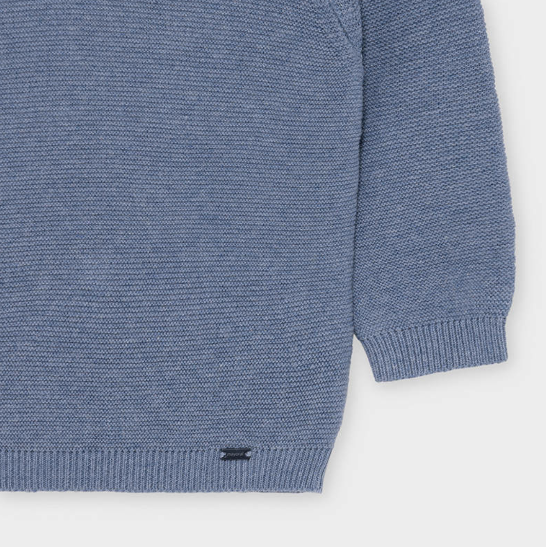 Long sleeved sweater for baby boy. Round neckline. Button fastening on the collar for easy fit. Made from 100% cotton fabric.