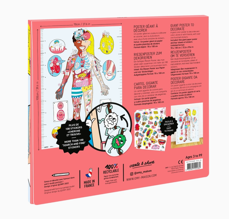 Discover the Winter season throughout this magical and super fun mountain! A whimsical trait with many fun details, a great illustrated discovery poster to share with your peers. An unlimited coloring poster to share, unfold on floor, table or wall. Easy to frame From 3 years old Made in France Details Content 1 giant poster Format Unfolded 70 x 100 cm / 27.5 x 39in Composition 100% paper Made and designed in France