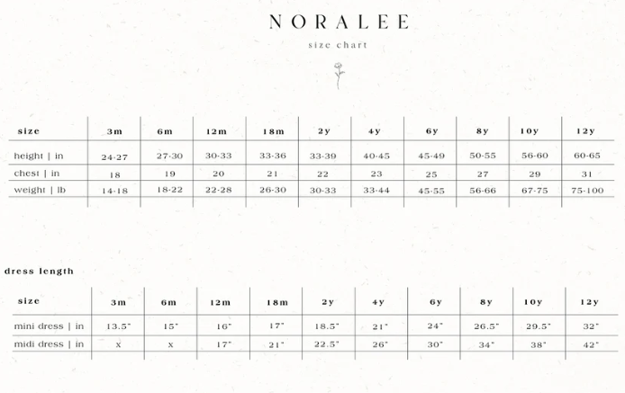 *Baby sizes and 2y includes a coordinating bloomer.